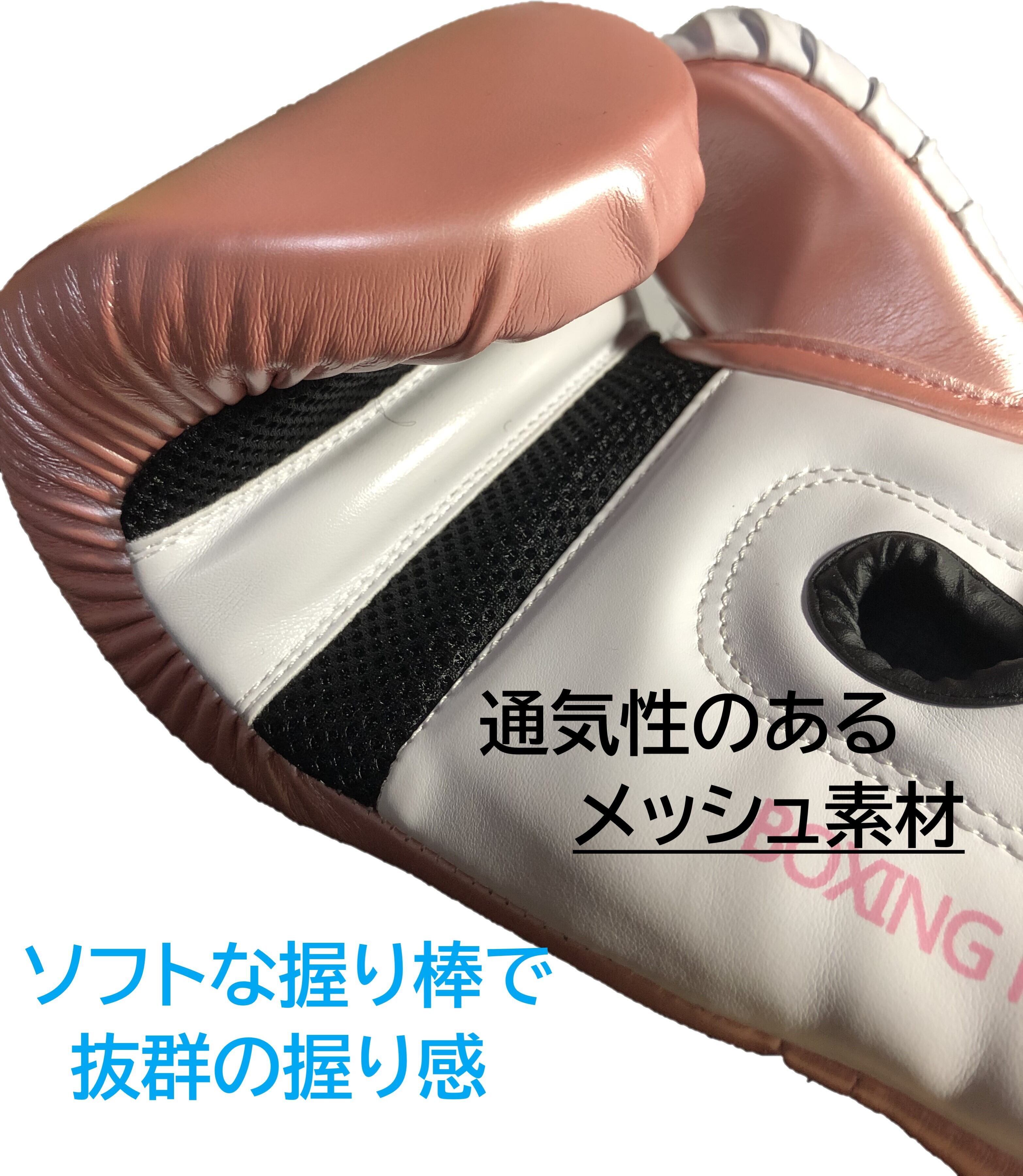 ボクシンググローブの手の平はメッシュ素材で抜群の通気性があり、通気穴が汗の湿気を排出し、速乾性を有しています。ムレを軽減、長時間の打ち込みやスパーリングへの負担をサポートします。炎夏でも快適にトレーニングできます!またソフトな握り棒により、優しい握り心地を提供するとともに、とても軽いので快適な装着感を与えてくれます!